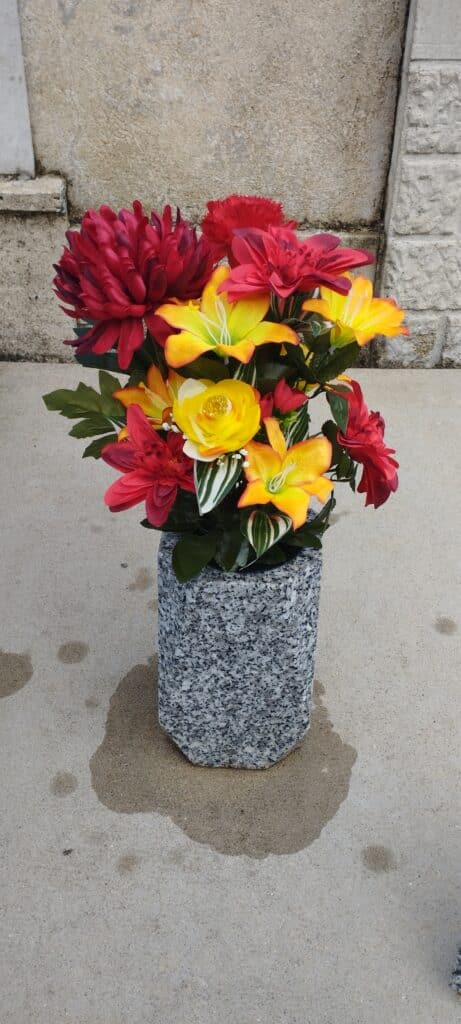 Je propose un entretien complet : nettoyage de la tombe, enlèvement des mauvaises herbes, remplacement ou entretien des fleurs selon la saison et décoration respectueuse des lieux.